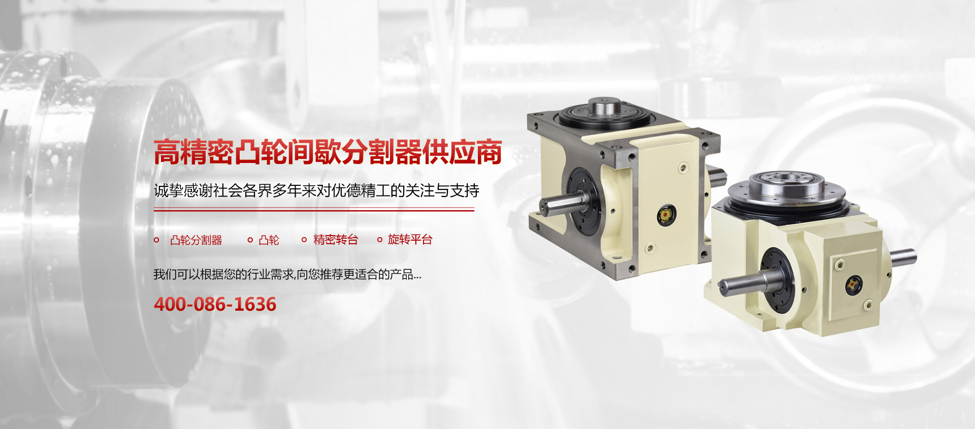 诸城市优德精工机械有限公司,是一家专业从事凸轮、分割器、间歇运动机构的集设计、研发、生产、销售为一体的国内知名厂家。